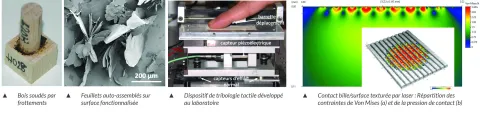 - La fonctionnalisation de surface dans des domaines variés allant de la mise en forme de matériaux métalliques, le remplacement de la phosphatation ou la performance sportive. La fonctionnalisation est abordée par 2 approches : Couches moléculaires auto-assemblées : greffage de molécules organiques sur les surfaces, création d’un lubrifiant écologique non huileux (breveté et commercialisé) et texturation des surfaces par laser femto seconde.
