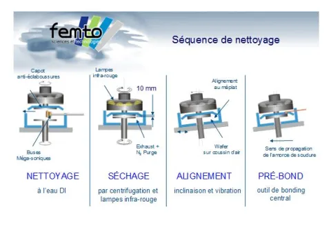 The CL200 equipment allows in a single sequence to clean, to dry, to align approximately and to pre-bond two substrates. Thnaks to a laminar flow, it provides an assembly free of any particles or contaminants. Each step is independent, it is possible to use the equipment only for cleaning and drying only one or even two substrates simultaneously.