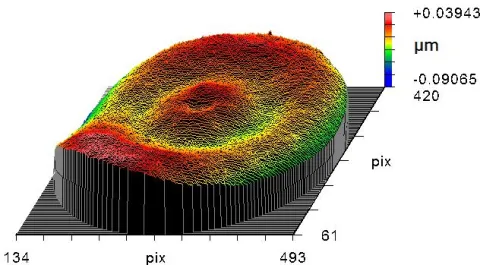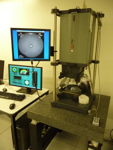 The Verifire GPI XP Fizeau interferometer allows to measure the deflection of a surface relative to a reference surface. In this configuration, the reference surface is a plane and the interferometer will create interference between the light reflected by this plan and that reflected on the wafer to be measured. By using an algorithm based on the phase-shifting and the use of a series of several image, the GPI software will find the profile of the measured object (or more precisely the difference of profile between the reference plane and the object measured). The advantage of this tool is that it allows a quick measurement over the entire surface of a wafer 100mm (4'') with a good spatial resolution thanks to its 1000x1000 camera.