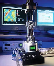 Several imaging modes are available including contact and intermittent contact modes (tapping) that are the most frequently used on this equipment. This latter method is obtained by oscillation of the lever at its resonant frequency.