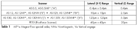 Low-current STM converter (optional); contact mode fluid cell (optional)