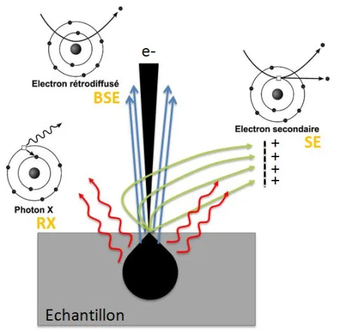 The interaction between the electron beam and the sample produces different types of emission. The microscope Quanta 450W is equipped with various detectors in order to define images through the secondary and backscattered electrons and to analyze the emitted X-ray (EDS).