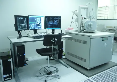 - Pseudo-eucentric stage: 5 axes 100 mm x 100 mm (tilt until 70°)