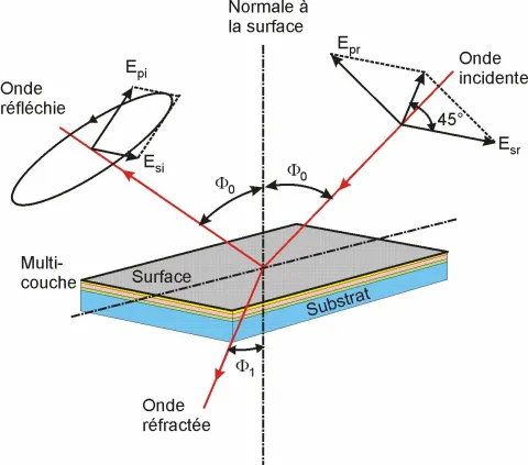 Ellipsometry is a non-destructive method for measuring the index and the thickness of thin dielectric layers. This technique enables to obtain the optical response of a material by studying the polarization ellipse modification of an incident beam during the beam reflection on the sample surface.
