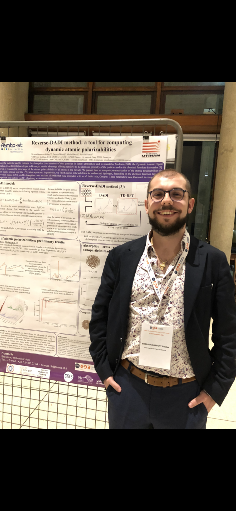 Brosseau-Habert, Nicolas | Miradji, Faoulat | Devel, Michel | Picaud, Sylvainressource | bibtex@inproceedings{07b583c0-779d-4b22-acdb-d4a54c5700fe, title = {Reverse DADI method: a tool for computing dynamic atomic polarizabilities}, author = {Brosseau-Habert, Nicolas and Miradji, Faoulat and Devel, Michel and Picaud, Sylvain}, year = {2023}, address = {Marseille, France}, booktitle = {Conf\'erence pl\'eni\`ere du GDR Ondes (2023)}, editor = {}, month = {dec}, url = {https://publiweb.femto-st.fr/tntnet/entries/20409/documents/author/data} } - inproceedings - Shifts of the UV-visible absorption peaks of soot nanoparticles as a function of their coalescence: an atomistic study